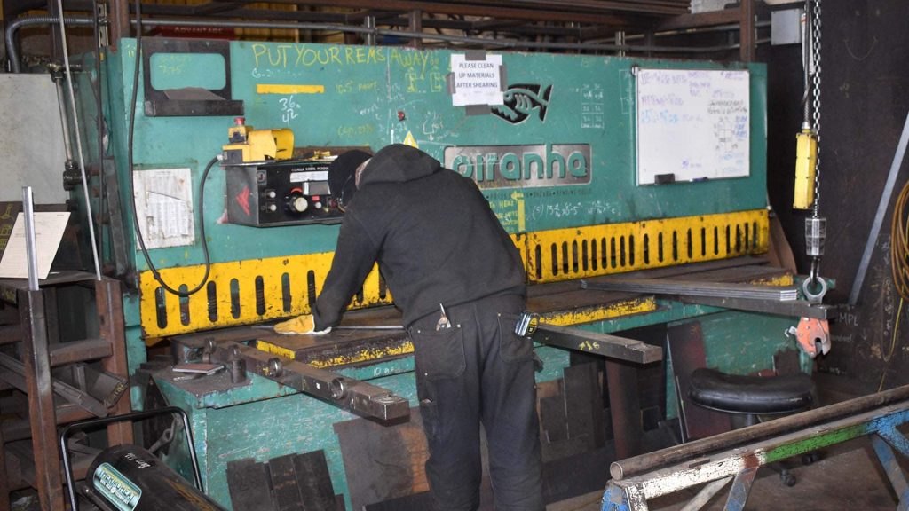 Shears material up to ½” thick and up to 10’ wide of any mild steel material. Gets the job done quickly for sameday turnaround on most jobs!